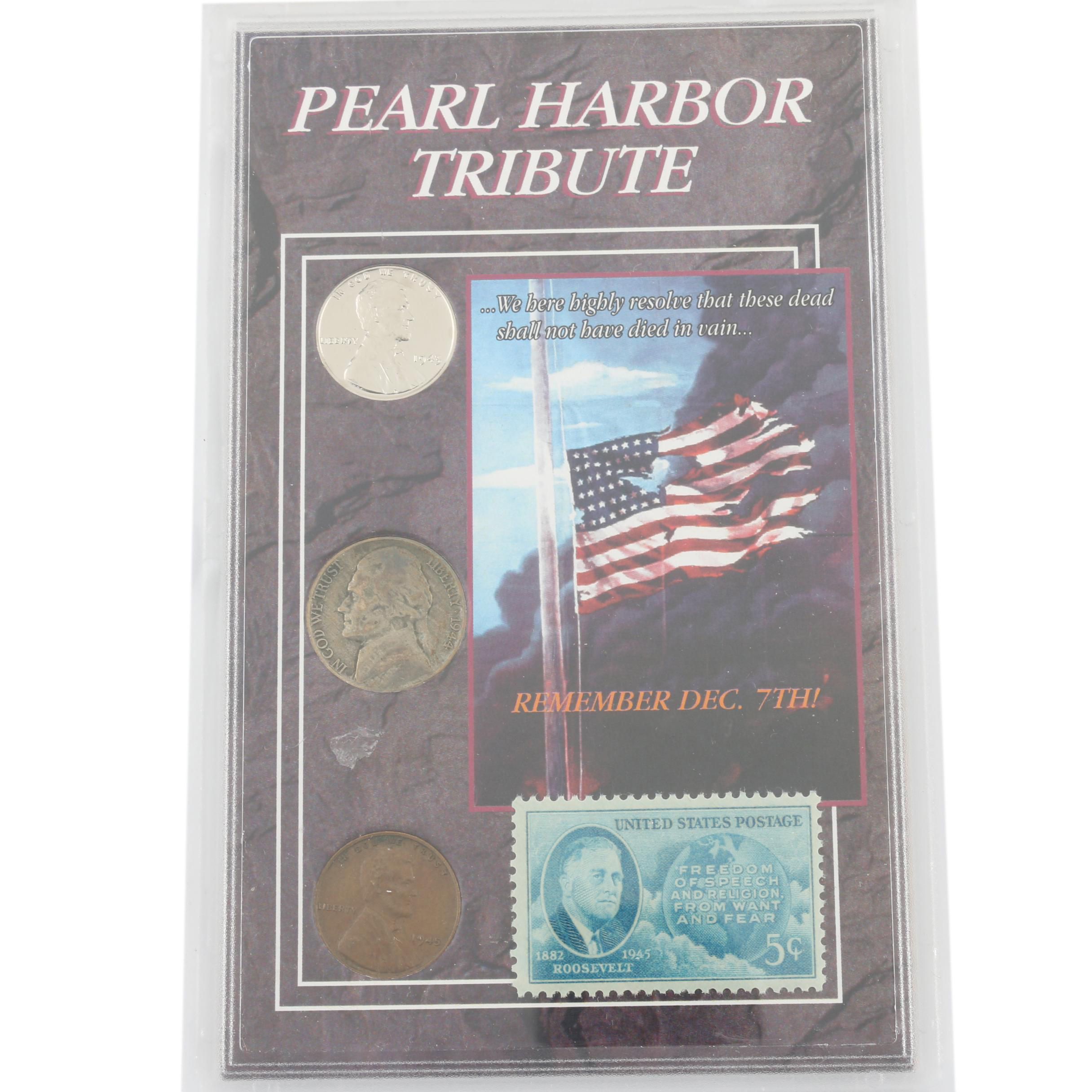 Pearl harbor tribute coin and stamp set.